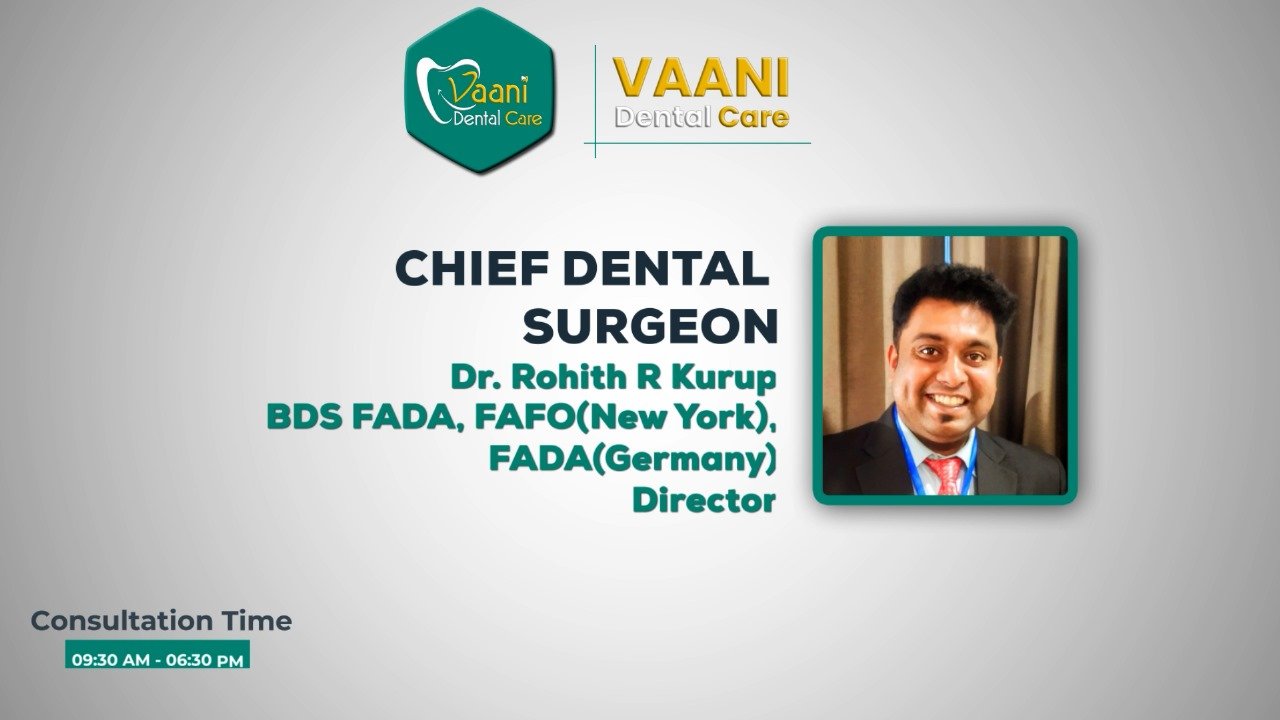 Founded by Dr. Rohith R Kurup and Dr. Gayatri S, Vaani Dental Care is the proud successor of this enduring legacy. Dr. Rohith represents the third generation of our commitment to providing the highest standard of medical care. Our journey began with a simple yet profound mission: to deliver unparalleled service and the latest advancements in dental treatments.